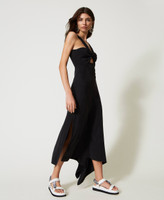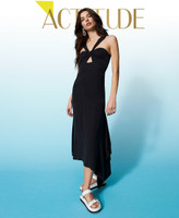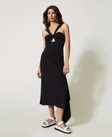 Midikleid aus gefärbtem TENCEL(TM) aus der Actitude Collection mit mittigem Knoten, Cut-out und Trägern an der Oberpartie und asymmetrischer Unterpartie mit Häkel-Patch.