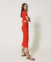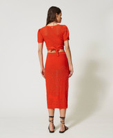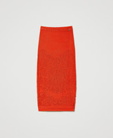 Figurbetonter Midi-Strickrock aus Viskosemischung mit platziertem geblümtem Durchbruchmuster und abnehmbarem Unterrock.