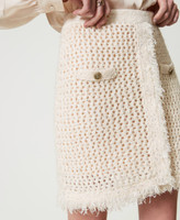 Figurbetonter Mini-Netzrock in Jacquardverarbeitung mit Fransen an der Unterpartie und vorne am Schlitz, elastischem Taillenbund und Leisten in Taschenoptik mit „Oval T“-Logoknöpfen aus Metall an der Vorderpartie.