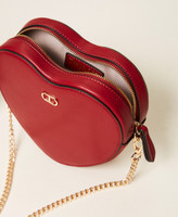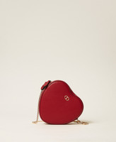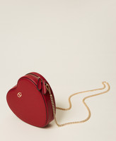Mini-Bag aus Kalbsglattlederimitat mit herzförmigem Design, „Oval T“-Logo, abnehmbarer Tragekette und Reißverschluss.