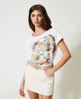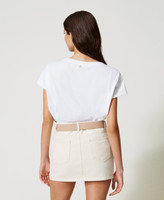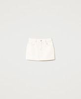 Ein Essential der Tages- und Abendgarderobe. Minirock aus gefärbtem Bull-Denim aus 55 % Bio-Baumwolle mit Light-Wash, fünf Taschen, Gürtelschlaufen, Reißverschluss und Logoknopf. Das Modell gehört zum Conscious Program „Revive“ von Actitude by Twinset.