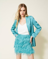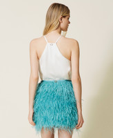 Minirock aus Satin mit Federn
