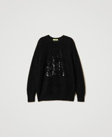 Vom Künstler MYFO designter Pullover in Limited-Edition aus Wolle-Mohair-Mischung mit aufgesticktem Teddymotiv aus farblich abgestimmten Pailletten. Das kastig geschnittene Rundhalsmodell hat lange Ärmel mit gerippten Bündchen.