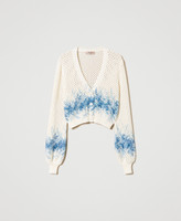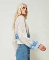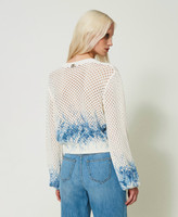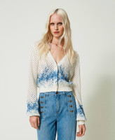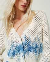 Langärmliger Netzcardigan aus Baumwolle mit platziertem Blumenprint und verdecktem Verschluss mit Metallknöpfen.