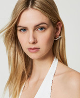 Ohrringe mit Perle, goldfarbenem Oval T und Steckverschluss.