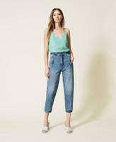 Runden Sie Ihre Outfits ab mit diesem funkelnden Top, das ganzflächig mit facettierten Pailletten bestickt wurde, die das Licht gekonnt brechen und eine dreidimensionale Optik entstehen lassen. Die Ränder wurden von Hand mit der Nähmaschine verziert und ähneln bestickter Spitze auf Tüll – ein Exklusiv-Dessin von Twinset. Versehen ist das gefütterte Modell mit feinen Rundträgern aus Crêpe de Chine, Seitenschlitzen und einem Reißverschluss mit Knopf an der Seite. Für einen extravaganten Stilmix kombinieren Sie eine Jeans dazu.