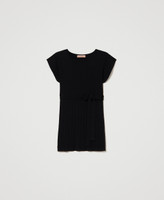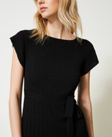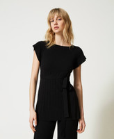 Pullover aus Viskosemischung mit Rippenmuster in Plisseeoptik, Flügelärmeln und an der Taille angenähtem Gürtel.