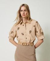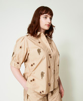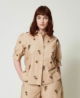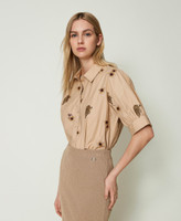Die Allover-Stickereien mit Dschungel-Exklusivmotiv von Twinset – ziehen bei diesem Hemd aus Baumwollpopeline alle Blicke auf sich. Das locker geschnittene Modell mit klassischem Hemdkragen und kurzen Raffärmeln wird von farblich abgestimmten Knöpfen in Perlmuttoptik geschlossen. Ideal, um dem Stil im Nu Charakter zu schenken.