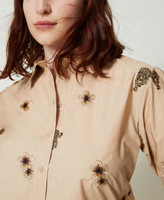 Popelinehemd mit Allover-Stickereien