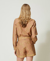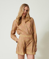 Diese Shorts aus italienischem Baumwollpopeline überzeugen durch den originellen Charme des exklusiven Printdessins von Twinset mit platziertem „Oval T“-Kettenmotiv. Das locker geschnittene Regular-Waist-Modell mit Falten auf der Vorderseite ist mit einem Reißverschluss versehen. Perfekt, um Ihren Stil im Nu ganz besonders zu machen, und wenn Sie grafische Total-Looks lieben, stylen Sie unser Hemd der gleichen Linie dazu.