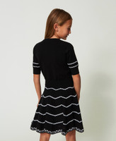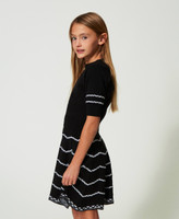 Stilvoller Basic-Chic für mühelose Kombinationen. Dieser Regular-Fit-Mädchenpullover aus Viskosemischung im Glattstrick sticht durch sein geometrisches Kontrastmotiv an den Ärmeln hervor. Dazu kommen ein runder Halsschnitt, ellbogenlange Ärmel und ein „Oval T“-Logo aus Metall. Besonders fein zu unserem Rock der gleichen Linie.