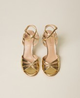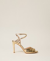 Sandale aus laminiertem Leder mit Tejus-Print, Knöchelriemchen, Stiletto-Absatz und Thunitsohle.