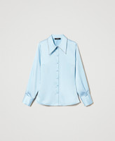 Satinhemd aus der Actitude Collection mit Strass am Kragen, langen Ärmeln mit breiten Manschetten und Seitenschlitzen.