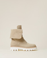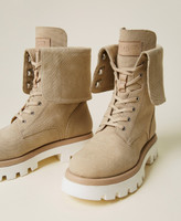 Schnürstiefelette aus Canvas mit Umschlag und Gummisohle.
