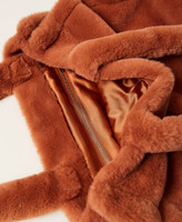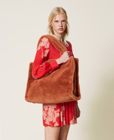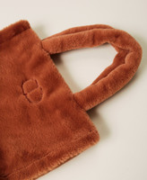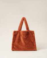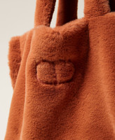 Shopper in Plüschoptik mit aufgesticktem ovalem T-Logo, zwei Rundhenkeln und Satinfutter.