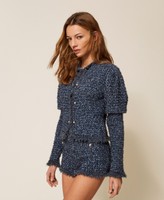Strickshorts aus Baumwollmischung mit Lurex und Jacquard-Verarbeitung sowie Fransen am Abschluss. Figurbetontes Modell mit elastischem Bund und Patten vorne mit dekorativen Schmuckknöpfen.