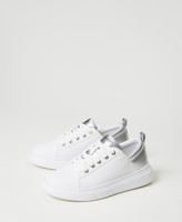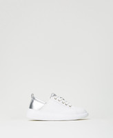 Sneakers in Lederoptik mit silberfarbenem Metallic-Detail an der Ferse und Gummisohle.