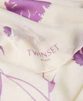 Stola aus Modalgewebe mit Printmotiv aus Nelken und aufgedrucktem Logoschriftzug.