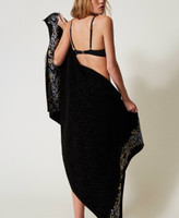 In Italien hergestelltes Strandtuch aus Baumwollfrottee mit geblümtem Jacquardband und Kontrastlogo.