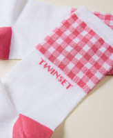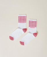 Strümpfe aus Baumwollmischung mit Vichymuster, Jacquardlogo, Ferse und Spitze in Kontrastfarbe.
