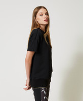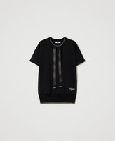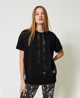 Kurzärmliges Sweatshirt aus Baumwollmischung mit Rippen am Hals, Tunnelzug mit Fischgratband und goldfarbenen Details. Dieses Modell gehört zur Capsule-Collection „Sport“.