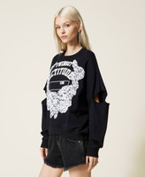 Sweatshirt mit Cut-outs, Logo und Spitze