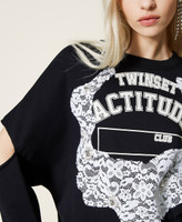 Sweatshirt aus der Actitude Collection aus Baumwollmischung mit Cut-out mit Raw-Edging an den Ärmeln, Collegeprint und Spitzenapplikation.