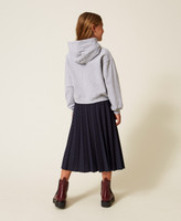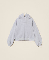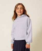 Mädchensweatshirt aus Baumwollstretch mit farblich abgestimmtem Logo aus Fadenstickerei auf der Vorderseite. Das Oversize-Modell hat einen Kapuzenkragen und lange Ärmel mit überschnittenen Schultern.