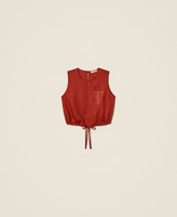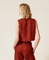 Top aus Leinen mit aufgesticktem Logo