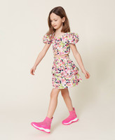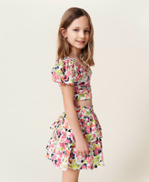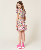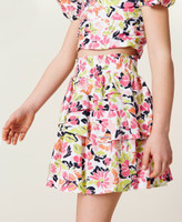 Set aus Popeline mit mehrfarbigem Blumenprint, bestehend aus einem Top mit Ballonärmeln und einem Volantrock.
