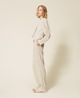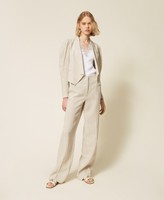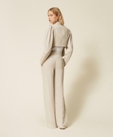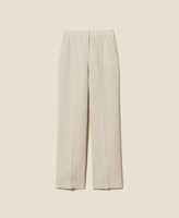 In Italien gefertigte Hose aus natürlichem Leinen mit Lurex, das einen zarten Lichteffekt erzeugt. Weit geschnittenes Modell mit Reißverschluss und Häkchen im Herrenstil, seitlichen Eingrifftaschen und Paspeltaschen hinten sowie Bügelfalte.