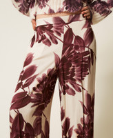 Hose aus Viskose mit exklusivem Twinset-Blumenprint. Das weit geschnittene Modell hat einen verdeckten Seitenreißverschluss, einen elastischen Taillenbund an der Rückseite, Seitentaschen und eine „Oval T“-Logoplakette an der Rückseite.