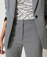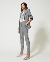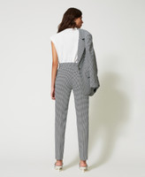 Zigarettenhose aus der Actitude Collection in Hahnentrittmuster, garngefärbt, mit Reißverschluss und Knopf, Schrägtaschen und Bügelfalte.