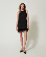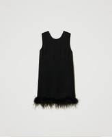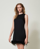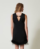 Ärmelloses Minikleid aus Satin mit Federn