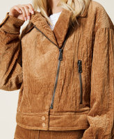 Weit geschnittene Bikerjacke aus Samt aus der Actitude Collection mit leichter Wattierung, Metallreißverschluss voluminösen Ärmeln und Knöpfen an der Unterpartie.