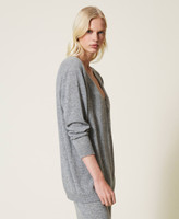 Nahtlos gearbeiteter Cardigan aus Kaschmirmischung mit lockerem Schnitt, V-Ausschnitt. Logoknöpfen und Logolabel aus Jacquard.