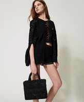 - Breite 27,5 cm, Höhe 21,5 cm, Tiefe 12 cm. Henkelweite 11,5 cm. Länge Trageriemen 50 cm