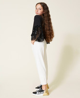 - Diese Hose ist im Jogginghosenstil geschnitten.