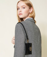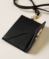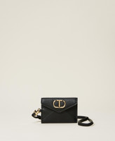 Flaches Kartenetui in Mäppchenform mit Überschlag, Druckknopf, „Oval T“-Logo, Karabinerhaken und abnehmbarem Riemen.
