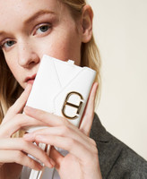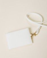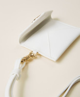 Flaches Kartenetui in Mäppchenform mit Überschlag, Druckknopf, „Oval T“-Logo, Karabinerhaken und abnehmbarem Riemen.