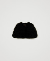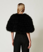 Mit Federn bedecktes Kurzcape mit Häkchenverschluss an der Vorderseite.
