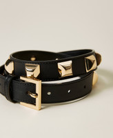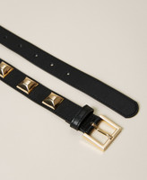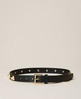 Regular-Waist-Gürtel aus Glattleder mit Pyramidenstumpfnieten und eckiger Schnalle.