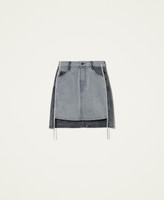Zweifarbiger Minirock aus Jeansstoff aus der Actitude Collection mit Kontrastdetails und Nähten mit Strassbordüren.