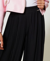 Plissierte Palazzohose aus zweilagigem Georgette mit Volant an der Unterpartie, elastischem Taillenbund, Logoschriftzug aus Metall und Futter in Shortslänge.