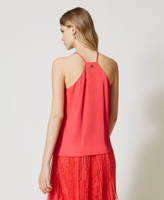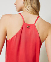 Oberteil aus Viskose-Satin mit Spaghettiträgern, Seitenschlitzen und Neckholder-Ausschnitt im Rücken, gefüttert mit Crêpe de Chine.