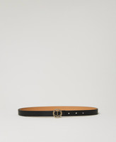 Schmaler Gürtel aus Lederimitat mit Pinschließe und kreisrunder „Oval T“-Schnalle mit Strassbesatz und goldfarbenem Finish.