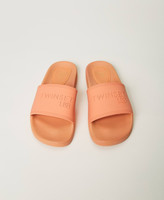 Slide-Pantolette aus mattiertem Gummi mit Steg, Logoprägung und geformter Sohle.