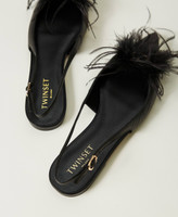 Slingback-Ballerina aus Leder mit farblich abgestimmten Federn, spitz zulaufender Zehenpartie, verstellbarem Riemchenverschluss.