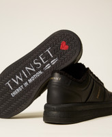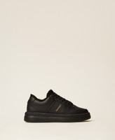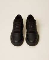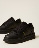 Allover-Black-Sneakers mit Print-Logo an der Seite, Kunstpelz an der Innenseite und Gummisohle.