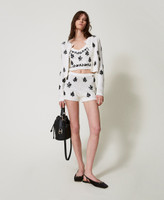 - "Schneeweiß"-Weiß Stickerei Schwarz